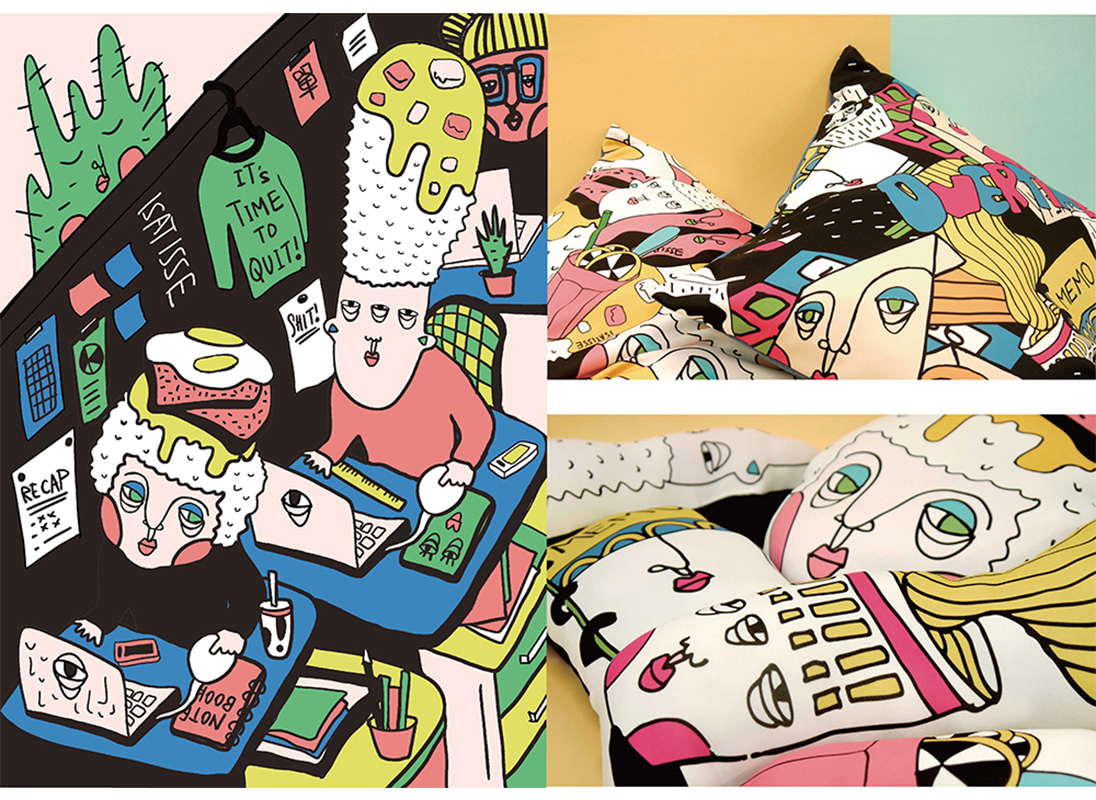 1) Collaboration with APLF Leather Show 2019 at Hong Kong Convention Centre. 2) Illustration performance at London Fashion Week 2019 collborating with Fashion Designer Yeung Chin. 3) Collaboration with Sanrio Character - Hello Kitty 4) Y-Loft Hostel Design 5) Exhibition at Korea Seoul Illustration Fair