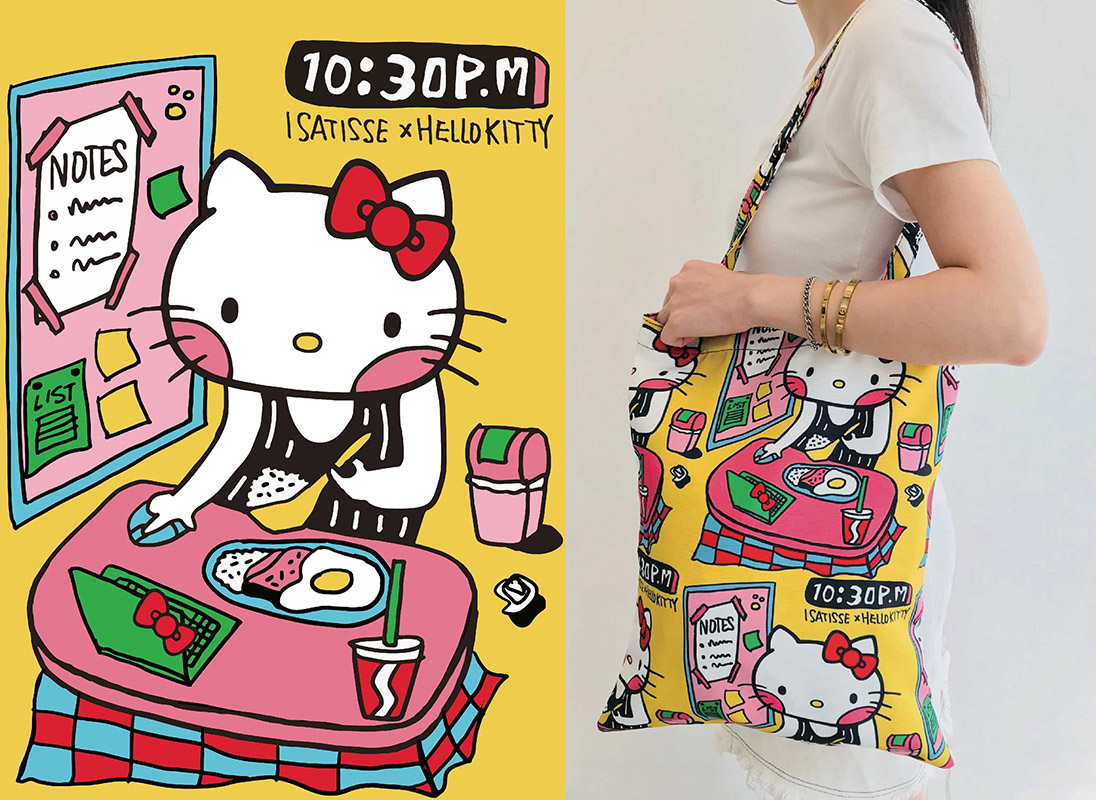 Besides regular products and fashion collections, the brand has also participated in various projects and has collaborated with different artists/creative unit. For example, ISATISSE x APLF at the APLF Leather and Material Fair 2019, graphic tote bags and leather caricature drawings were made as souvenirs for buyers and visitors. The event “Sanrio Characters x Crecra Fair” in June 2018 where Hello Kitty x Isatisse tote bags were