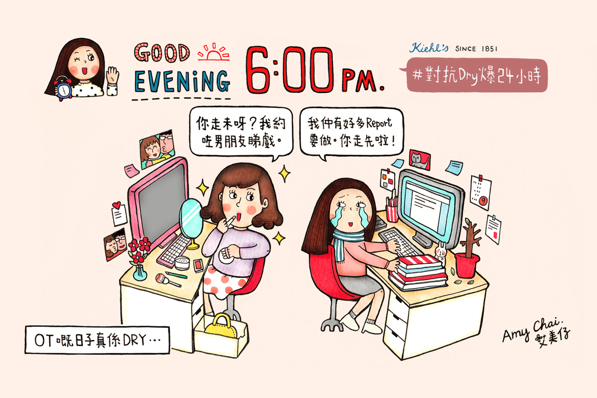 Amy Chai is drawing is a company started up by Amy Chai, an illustrator who draws regularly on the Facebook page "Amy Chai is drawing …" to share the anecdotes of her married life. So far there are around 20,000 people followed. She specialises in hand-drawn comics, as well as characters and pattern design. The company mainly provides the following design services: Advertising Illustrations, Advertising Animations, Publications, Product. Amy Chai is drawing 's clients include : Union Pay, WWF HK, Kiehl's, Darlie HK, K11, Lab Concept, Tokyo Milk Cheese Factory, Dermes, Viu x Yahoo, Sogo Thankful Week, SK-II, Panasonic Beauty, Kjeldsens, Forever Couple, ECjobsonline, Broadway, eSynchrony, ClubOne, MingRi Institute For Arts Education and Pang Ho-Cheung's movies : Women Who Flirt, A Nail Clipper Romance ...