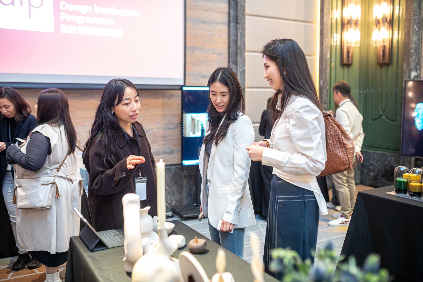 The event attracted over a hundred professionals from the design industry, business representatives, and FIP, DIP, and DEA designers and alumni. Designers introduced their unique concepts and brand strategies to the guests, fully showcasing Hong Kong's distinctive creativity and innovation during the event. The event facilitated interactions among designers from the three major programmes (FIP, DIP, and DEA), bringing together creative ideas from different disciplines and sparking more inspirations. It also provided a platform for direct interactions between designers and industry leaders, buyers, and potential partners, fostering relationships within the design industry and promoting business opportunities.
